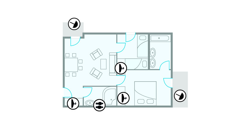40 m² mit Doppelbett, Sitzecke und separatem Schlafzimmer mit getrennten Betten